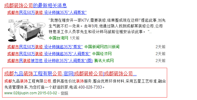 成都九品裝飾工程有限公司關(guān)鍵詞在百度首頁(yè)第二位