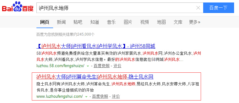瀘州風(fēng)水地師關(guān)鍵詞在百度首頁(yè)第二位