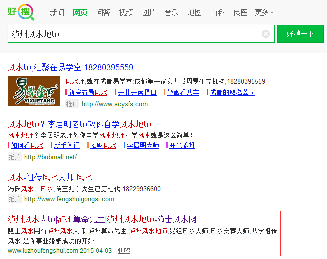 瀘州風(fēng)水地師關(guān)鍵詞在360首頁(yè)第一位